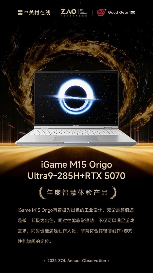 2025年度百大优秀科技产品:年度生产力笔记本iGameM15Origo
