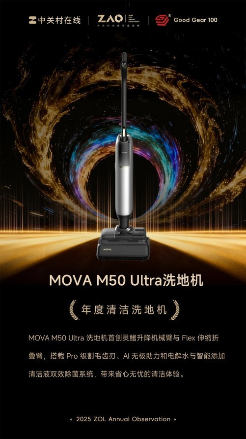 2025年度百大优秀科技产品:年度清洁洗地机MOVAM50Ultra